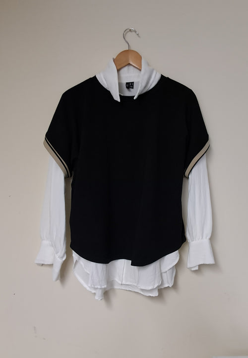 SHORT SLEEVE TOP, DIPPED HEM. SIZE14/16