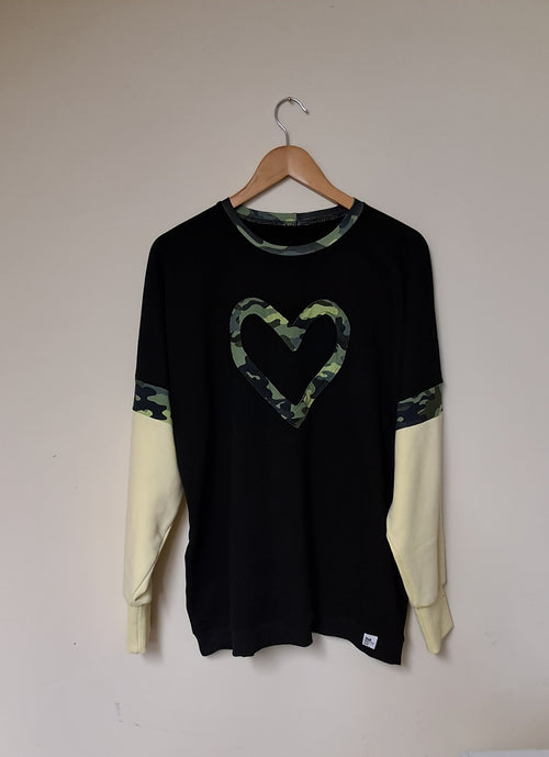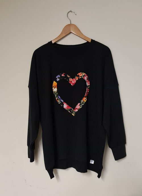 NEW BLACK SWEATSHIRT WITH FLORAL HEART