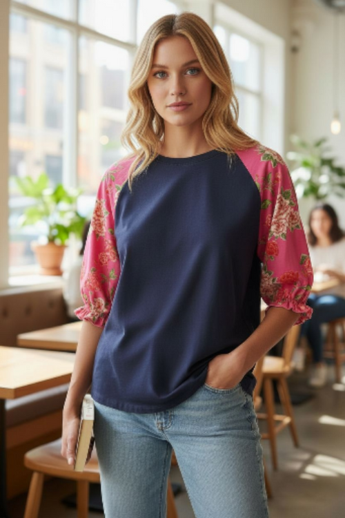 NAVY SWEATSHIRT WITH CONTRASTING SLEEVES